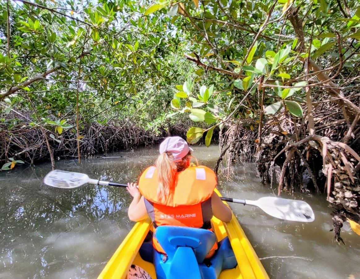 Location de kayaks biplaces, 7500 XOF la demi journée par personne.