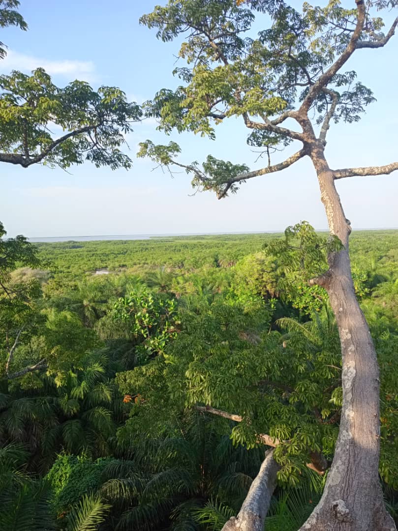 A 3 km du Figuier, dans la belle forêt de Canoufa, vous pourrez parfaitement sécurisé, monter à 25 mètres de hauteur afin d'observer l'estuaire jusqu'à l'île de Karaban. (3000 XOF)